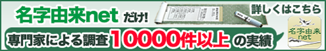 名字由来netは「名字検索No.1」であり、日本の皆さまと一緒につくりあげる「名字の百科事典」サイトです。