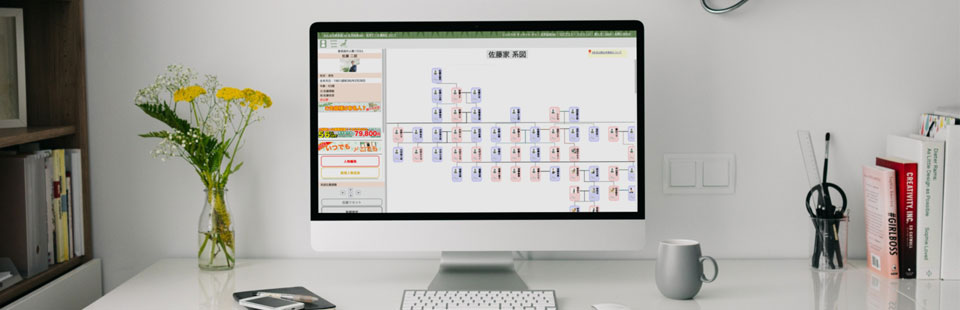 パソコンやスマートフォンから人物を入力していくだけで、誰でも家系図を作っていくことができます。