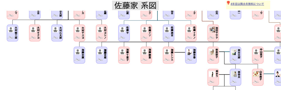 無料会員様は50名まで登録でき、名前や生没年だけでなく写真も登録することができます。