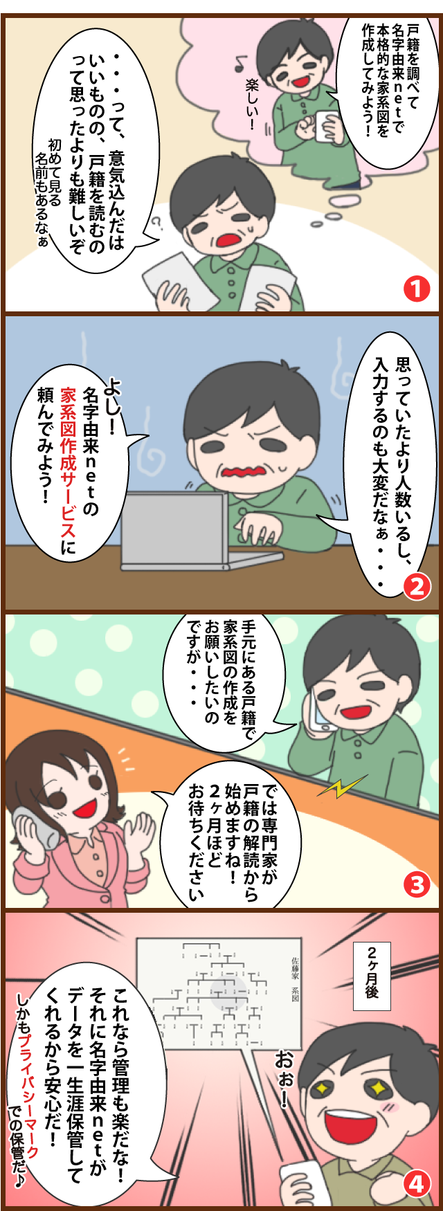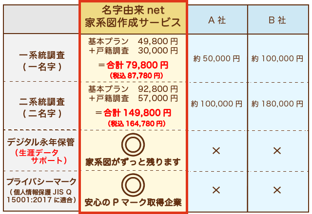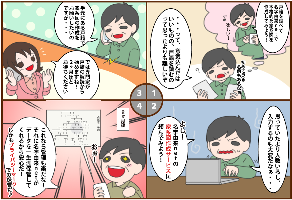 お客様に代わって名字由来netが家系図を作成します!