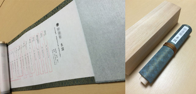 本日、かねてよりお願いしておりました家系図の巻物、確かに受け取りました。