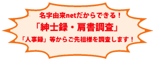 ※紳士録・肩書調査は昭和刊行の「人事録」等の調査となりますので、明治やそれ以前の調査が可能と判断された場合、ご希望があれば別途ご料金で調査を追加できます。