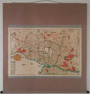 名字、家系図、歴史が好き、興味があるという方に人気の江戸期大名古地図、江戸城下絵図の掛け軸がございます。