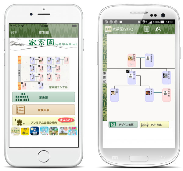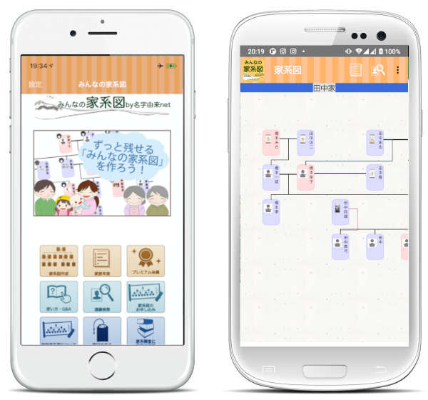 家系図 by 名字由来netアプリでは、直感的・かんたんに家系図の作成ができます。