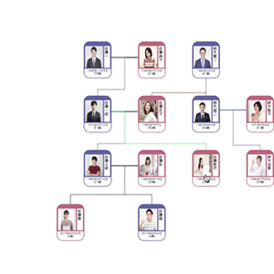 ※ご登録の系図内容によっては、線が交差して表示される場合がございます。生年月日を入力することでより良い表示となりますが、それでも変わらない場合は手動で並び替えをお願いいたします。