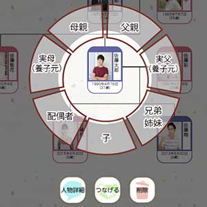 ・遠縁と繋がった場合、これまでの位置が変わってしまうことがあります。「人物移動」で再度お好きな位置に移動していただくことができます。