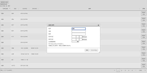 ・「遠縁検索機能」では「名字」や「名前」「生年月日」などの情報を組み合わせて、「ご先祖様」や「遠縁」を検索することが可能です。自分の知らなかった繋がりを自ら探すことも可能になります。(プレミアム会員(5日間無料)のみの機能となります。)
