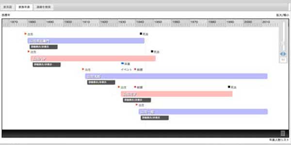 ・生年月日が入力されている人物のみ表示されます。家系図内の全員が生年月日未入力の場合、何も表示されませんのでご注意ください。
