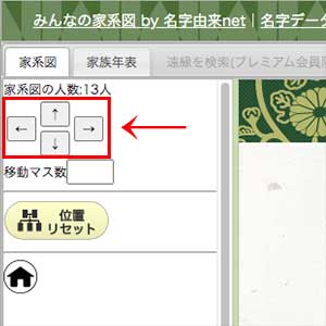 ・矢印ボタンで上下左右に家系図を移動させ、全体が収まるよう調整をお願いいたします。