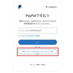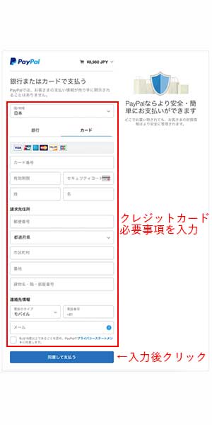 クレジットカード、Paypalアカウントでのお支払いの場合
