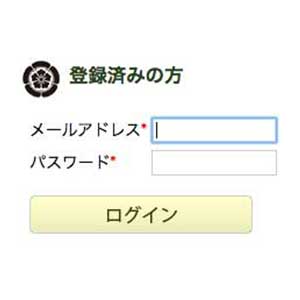 ①画面右側の「登録済みの方」にメールアドレスとパスワードを入力、ログインボタンを押してください。