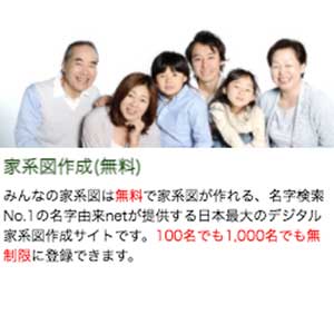 ・100名でも1,000名でも、無制限に登録できる、日本最大の家系図サイトです。