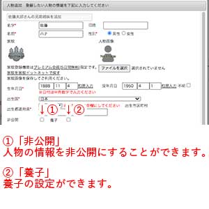 ・家系図データは「非公開」を選択して登録するとご自身のみで楽しむこともできますのでご安心ください。