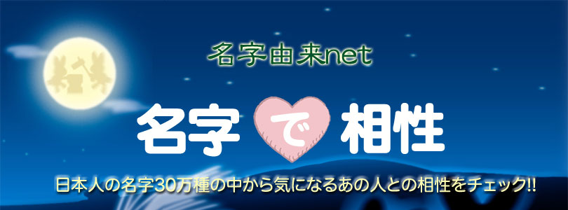 ※「名字で相性」の診断結果は、約30万種の名字情報から、読みや漢字・カタカナ・ひらがなの字画、漢字の部首など多種の要素を勘案し、さらに日時や性別までを含め当会独自に解析した結果が相性として反映されますので、毎日の参考としてご利用ください。