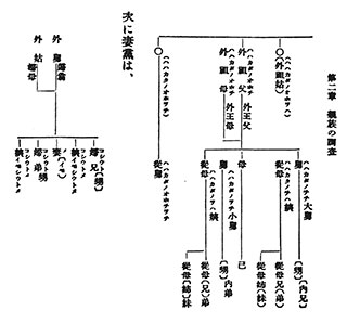 第一章は序説として、系図を調べる目的や調査に当たっての注意点が書かれています。次いで親族の調査方法について記載されています。