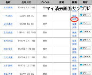 入力した有名人情報が一覧でわかり、削除もできるので自分の見易いように管理することができます!