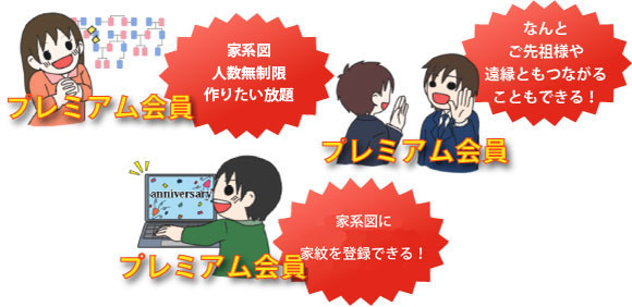 家系図作成・遠縁検索機能をご利用いただくには、会員登録が必要です。